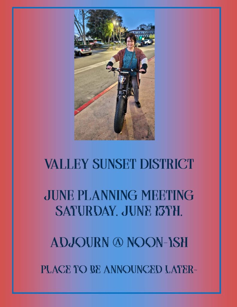 Saturday, June 14th 9:00 A.M. registration with Call to order at 9:30 A.M. – Valley Sunset June Planning